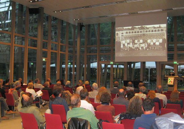 Dr Robert Gawkowski z Uniwersytetu Warszawskiego przybliżył historię żydowskich klubów piłkarskich okresu II RP i przypomniał, że pierwszego gola w historii reprezentacji Polski strzelił Józef Klotz, zawodnik Jutrzenki Kraków i Makabi Warszawa. Martin Brand z Berlina opowiedział o klubach piłkarskich w przedwojennym Lwowie, zaś członek zarządu województwa śląskiego Jerzy Gorzelik - o znakomitych piłkarzach rodem ze Śląska, m.in. Erneście Wilimowskim, czy Gerardzie Wodarzu.