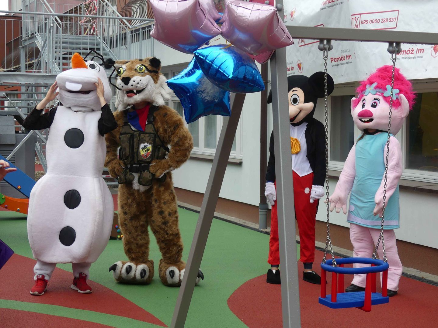 Podczas otwarcia było szczególnie nastrojowo. Kolorowy plac dodatkowo ozdobiono balonami i rysunkami pacjentów, a w niebo wystrzeliły bańki mydlane. Tania Książka, stały darczyńca Fundacji „Pomóż Im”, sprezentowała dzieciom ławeczkę czytelnika, na której dzieci i rodzice zgłębią niejedną fascynującą lekturę. Ze względów bezpieczeństwa tylko przez szyby, ale to przecież zaledwie centymetry szkła, do dzieci zaglądały żywe maskotki. Dwie utalentowane dziewczyny - Justyna Kostecka i Oliwia Demiańczuk – zaśpiewały dzieciom piękne piosenki z bajek. Jednym z utworów był „Kiedy jesteś tu” z filmu „Zaplątani”. Padają tam m. in. słowa „Tak się rodzi nowy czas, moje życie się odmienia.” Oaza Radości jest tylko miejscem, ale takim, które odmieni życie małych, walecznych pacjentów.