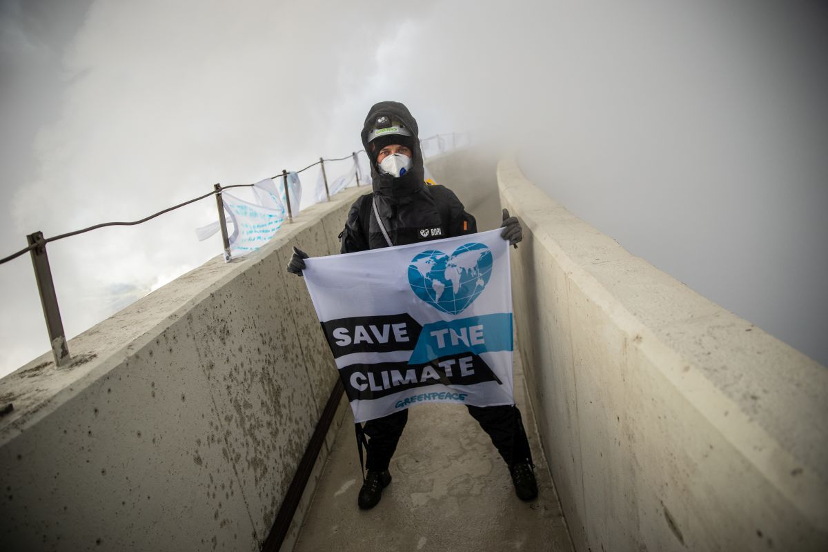 Obrońcy klimatu kontynuują swój protest i instalują na chłodni kominowej flagi
