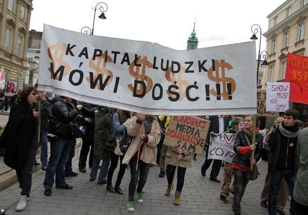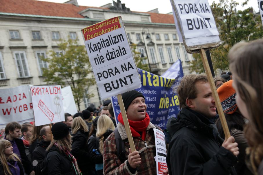 W Warszawie swoje poparcie dla tych protestów postanowiło wyrazić kilkaset osób, które zjawiły się w sobotę pod bramą Uniwersytetu Warszawskiego. „Wall Street, Warszawa – wspólna sprawa”, „Nie płacimy za wasz kryzys”, „Chcemy mieszkań, nie kredytów” – skandował tłum, który przemaszerował ulicami Warszawy pod kancelarię Premiera RP.