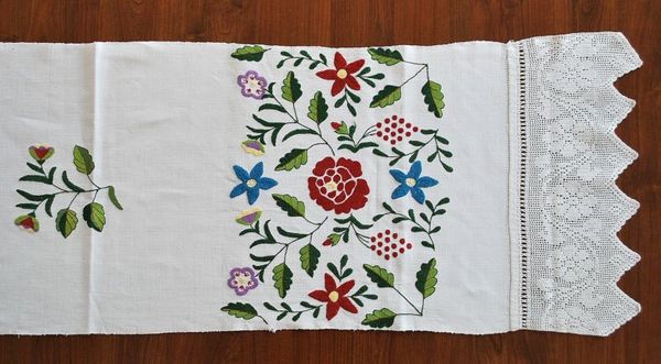 Jeszcze w latach 40, 50 i 60 ubiegłego wieku młode dziewczęta wyszywały do kilku ręczników z przeznaczeniem na posag. Pas samodziałowego lub fabrycznego płótna, nawet do 3 metrów długości, zdobiły haftem krzyżykowym lub płaskim. Do krótszych boków doszywały misternie wykonane koronki szydełkowe o ornamencie kwiatowym lub geometrycznym. Taki ręcznik był przekazywany z pokolenia na pokolenie. Stanowił element obrzędowości rodzinnej, jak i dorocznej mieszkańców gminy. Towarzyszył człowiekowi w jego życiowej drodze - obdarowywano ręcznikiem podczas chrztu nowonarodzone dzieci, był obecny na ślubie i weselu, zdobiono nim święte obrazy – ikony, a na końcu wkładano go do trumny. Ponadto obwiązywano nim przydrożne i cmentarne krzyże.