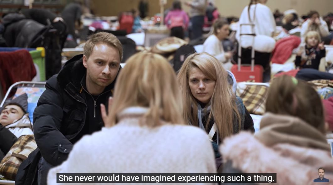 W materiale„W Charkowie dzieje się piekło” dziennikarz zabiera widzów do punktu recepcyjnego w Hrubieszowie, gdzie spotkał sięzViktoriią, mieszkanką Charkowa, matką 13-letniej Olhy i 7-letniego Serhii.