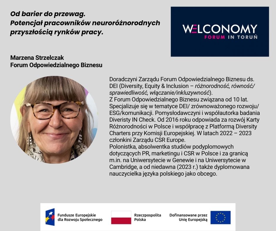 Regionalny Ośrodek Polityki Społecznej w Toruniu zaprasza do udziału w panelu dyskusyjnym: „Od barier do przewag. Potencjał pracowników neuroróżnorodnych przyszłością rynków pracy”, organizowanym w ramach XXXIII edycji Welconomy Forum in Toruń.