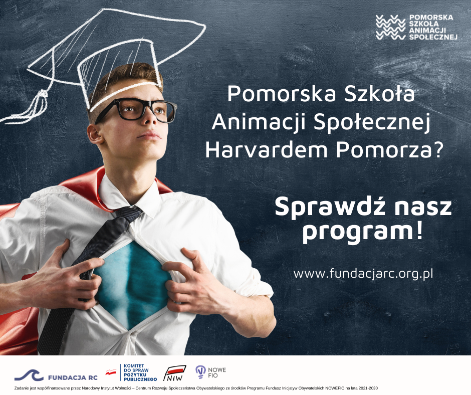 Pomorska Animacja Społeczna 2.0, zadanie jest współfinansowane przez Narodowy Instytut Wolności Centrum Rozwoju Społeczeństwa Obywatelskiego ze środków programu Fundusz Inicjatyw Obywatelskich NOWEFIO na lata 2021-2030