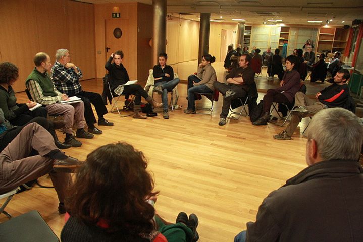 Dziś punktualnie przyszło około trzydziestu osób, ale ciągle wchodzi ktoś nowy. Spotkanie prowadzi Maite. Wyjaśnia, czego można się spodziewać po tym zebraniu i prosi, aby każdy się przedstawił. Większość to rodowici Katalończycy, wszyscy mieszkają w Katalonii.