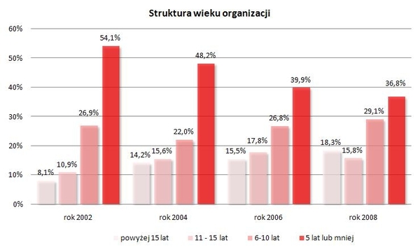 stosunku do ogółu organizacji). W 2008 r., mniej niż pięć lat miało