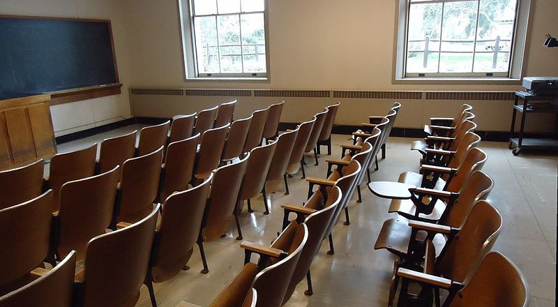 Zabiera nas do dawnej szkoły. Jest zadbana. W niektórych klasach stoją jeszcze ławki. Jest duża sala gimnastyczna, sala teatralna ze sceną. Na razie z sal korzysta Uniwersytet III Wieku: seniorzy malują, grają w brydża.