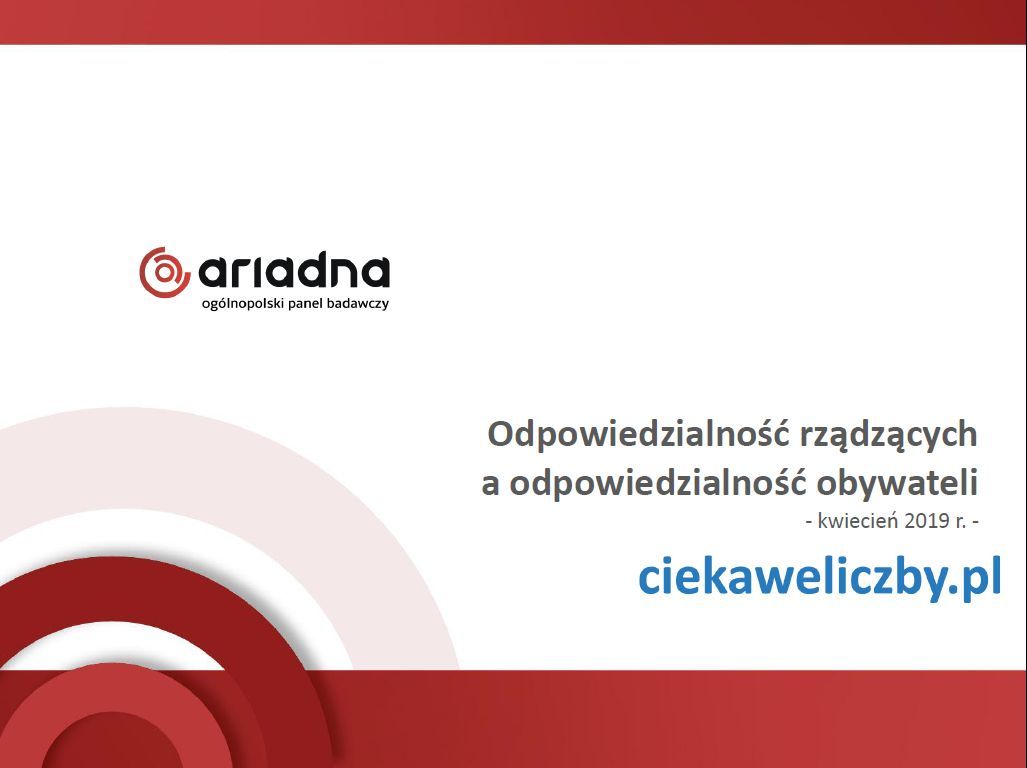 Nota metodologiczna: Badanie przeprowadzone dla serwisu ciekaweliczby.pl na panelu Ariadna w dniach 19-22 kwietnia 2019 roku. Próba ogólnopolska osób od 18 lat wzwyż (N=1058). Kwoty dobrane wg reprezentacji w populacji dla płci, wieku, wykształcenia i wielkości miejscowości zamieszkania. Metoda: CAWI