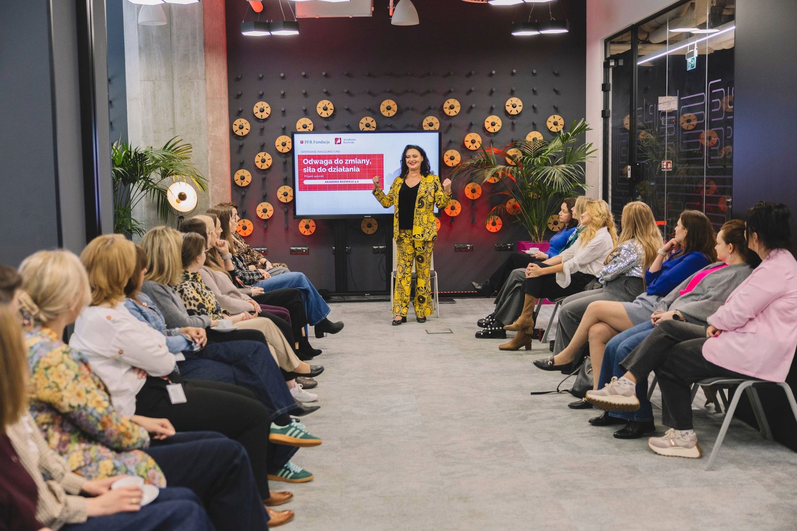 Punktem kulminacyjnym inauguracji były warsztaty z autoprezentacji prowadzone przez Aurelię Sobczak, aktorkę teatralną i filmową. Uczestniczki ćwiczyły panowanie nad głosem i mową ciała oraz pracowały nad budowaniem wewnętrznej pewności siebie – kompetencji kluczowej przy prezentowaniu własnych pomysłów biznesowych. Po intensywnych ćwiczeniach przyszedł czas na networking, podczas którego nawiązały się pierwsze relacje w nowo powstałej społeczności kobiet.