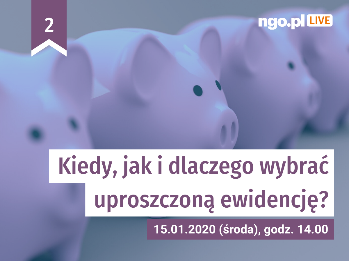 Zapraszamy do oglądania i uczestnictwa w lajwie NGO.pl. Jeśli jesteście małą organizacją, nie macie dużych przychodów (np. same składki), nie dostajecie dotacji i nie planujecie się o nie ubiegać, warto zastanowić się, czy nie prowadzić uproszczonej ewidencji. Początek transmisji live o godz. 14 już dziś (15 stycznia). Transmisja dostępna na profilu NGO.pl na Facebooku oraz w portalu NGO.pl.