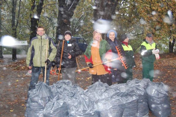 W ciągu zaledwie pół godziny nazbieraliśmy kilkanaście worków liści kasztanowców.