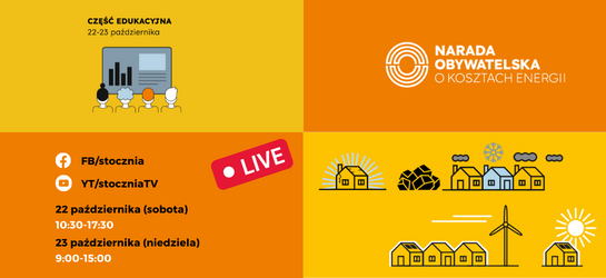 Zachęcamy do śledzenia procesu za pośrednictwem dostępnej dla każdego relacji na żywo z pierwszego i drugiego dnia panelu obywatelskiego w serwisie Facebook - profile Narada obywatelska o kosztach energii oraz Fundacja Stocznia oraz na YouTube - kanał Stoczni. Transmisja rozpocznie się w sobotę, 22 października 2022 r., o godzinie 10:30 i potrwa do 17:30, a w niedzielę od 9:00-15:00.