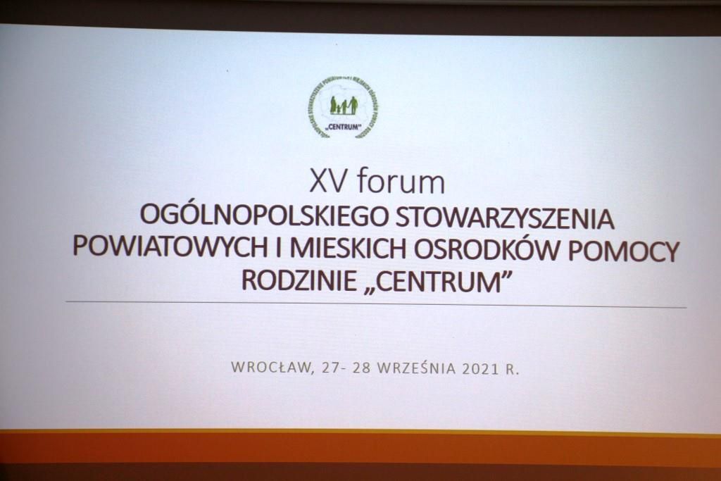Organizatorem dwudniowego forum (27 - 28.09.2021 r.) było Ogólnopolskie Stowarzyszenie Powiatowych i Miejskich Ośrodków Pomocy Rodzinie „CENTRUM” i Powiatowe Centrum Pomocy Rodzinie we Wrocławiu. Gościem honorowym XV FORUM był Starosta Powiatu Wrocławskiego Roman Potocki.