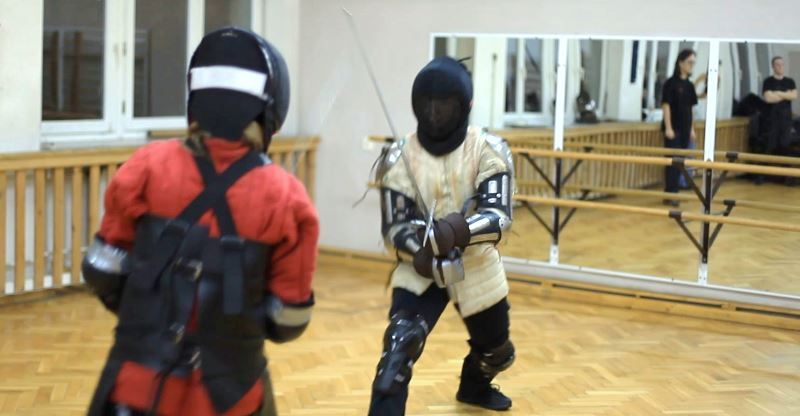 Chłopaki przebrani, gotowi do pracy, zaczynają się przemieszczać po sali. Wśród nich jest jeden „dyrygujący”. To Marcin. Zanim trening rozpocznie się na dobre, wtajemnicza nas w swój świat. – Jest tak, że zwykle, gdy myślimy o walce w średniowieczu, widzimy pancernych Krzyżaków, gigantyczne miecze i ciężkie zbroje. Jednakże większość walk w tamtym czasie wyglądała zupełnie inaczej! Ci ludzie żyli codziennie z cieniem śmierci za plecami. Nosili broń przy sobie przez cały czas. Czy robili z niej użytek? Często. Pocięte twarze, wybite zęby i blizny na całym ciele nie były wtedy niczym dziwnym. To było normalne. Jednakże byli tacy, którzy o walce wiedzieli o wiele więcej od innych. To byli mistrzowie szermierki. I ci mistrzowie pozostawili po sobie manuskrypty. A ponieważ sztuka walki średniowiecznej została zapomniana, my dzisiaj staramy się na podstawie tych manuskryptów ją odtworzyć. Chcemy, żeby ta sztuka walki znów żyła, żeby każdy z nas wiedział, że mamy w Europie tradycję sztuk walki równie długą, co Japonia czy Chiny. Tradycję, która ciągle może żyć, i z której możemy być dumni.