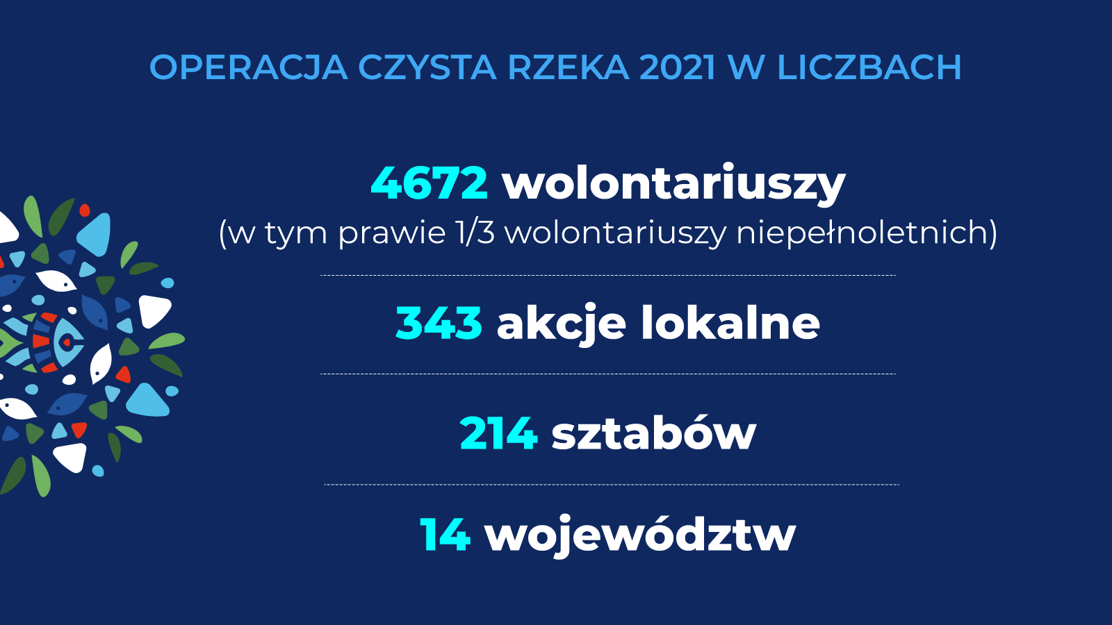Ponad 4600 wolontariuszy z ponad 200 sztabów sprząta Polskę w ponad 350 akcjach w ramach 3. edycji Operacji Czysta Rzeka. W najbliższy weekend odbędzie się finał tej inicjatywy w ponad 200 lokalizacjach w 14 województwach. Na łono natury w celu zbierania śmieci ruszy ponad 3000 wolontariuszy. Wszystkie akcje lokalne odbywają się zgodnie z aktualnymi obostrzeniami związanymi z epidemią COVID-19 i w grupach ograniczonych do 20 osób.