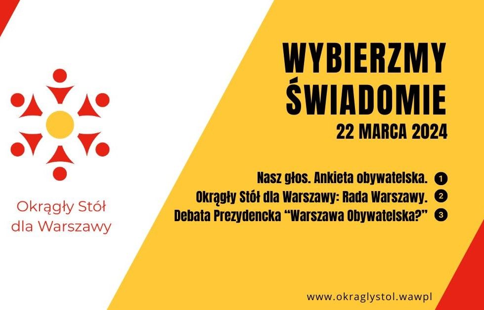 ⇒ do 20 marca 2024 wypełnijcie ankietę: https://bit.ly/OkrągłyStółdlaWarszawy