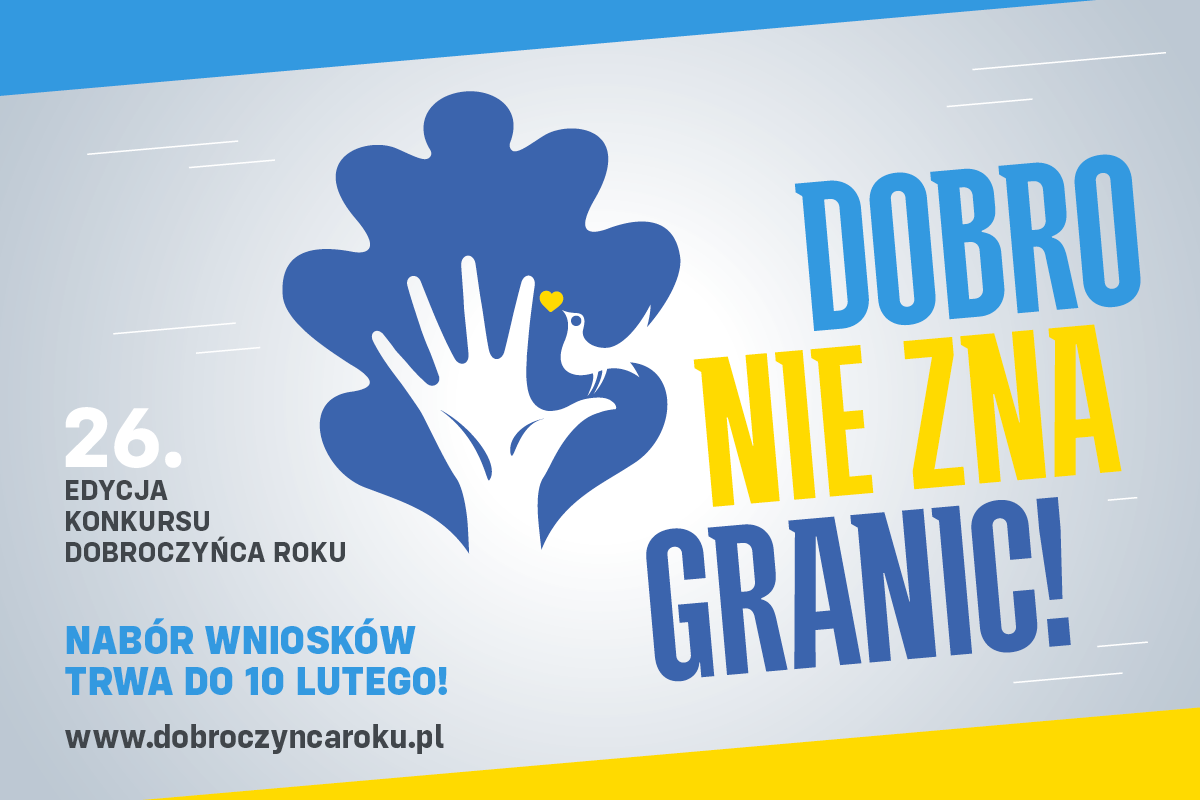 Jeśli twoją fundację lub stowarzyszenie wspiera społecznie odpowiedzialna firma – zgłoś ją do 26. edycji konkursu o tytuł „Dobroczyńca Roku”. To najstarsze i najbardziej prestiżowe wyróżnienie dla firm, przedsiębiorców i fundacji firm oraz doskonała okazja do publicznego podziękowania darczyńcom za udzielone wsparcie. Nabór wniosków trwa do 10 lutego. Statuetki zostaną wręczone na uroczystej gali 31 maja 2023 w Warszawie.
