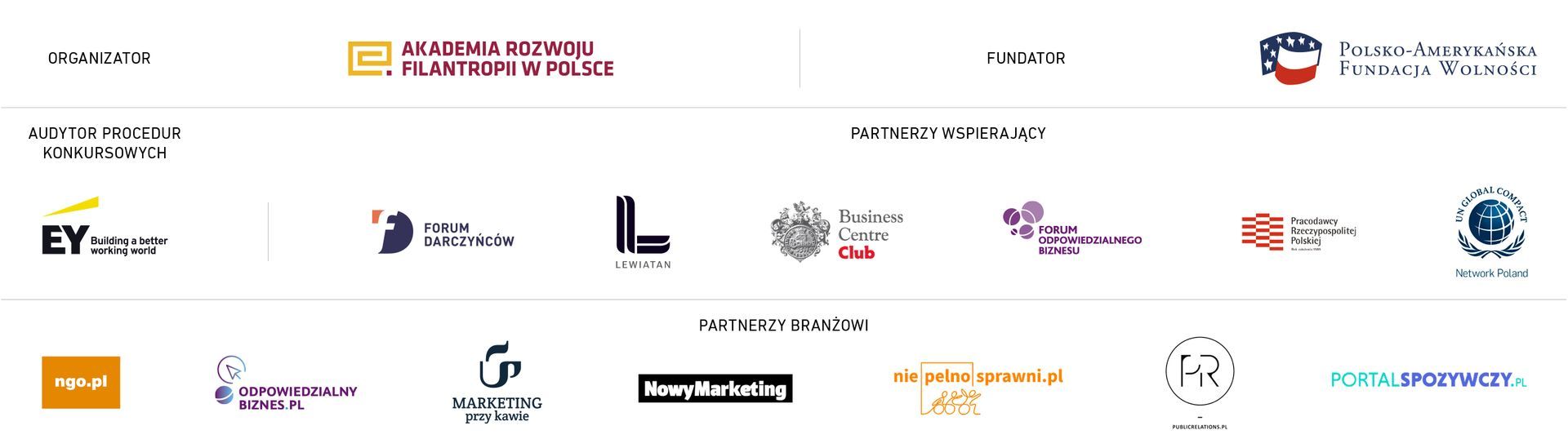Patroni medialni: portal organizacji pozarządowych ngo.pl, portal publicrelations.pl, niepełnosprawni.pl, portalspozywczy.pl, Nowy Marketing, odpowiedzialnybiznes.pl, marketingprzykawie.pl