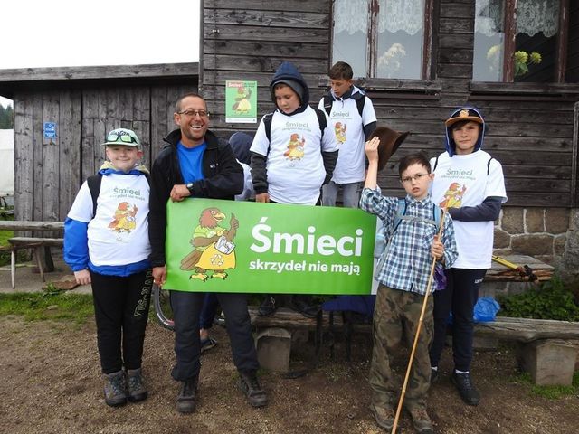 Dzieci z Wrocławia i Janowic Wielkich sprzątały 28 czerwca szlaki w Górach Izerskich. Mimo fatalnej pogody uczestnicy akcji nie odpuścili. Wspólnie z podróżnikiem Dominikiem Dobrowolskim nie tylko sprzątali, ale zamontowali również tablice z orłem przednim i napisem "Śmieci skrzydeł nie mają" na Chatce Górzystów i stacji turystycznej Orle.