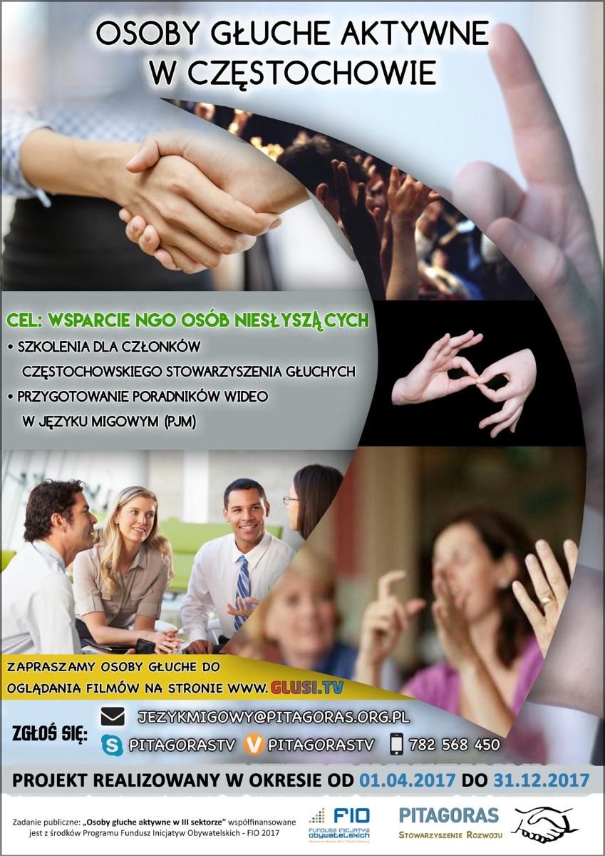 Stowarzyszenie Rozwoju PITAGORAS w Rzeszowie w okresie od 1 kwietnia 2017 do 31 grudnia 2017 realizuje projekt skierowany do osób głuchych zainteresowanych rozwojem prowadzonej działalności stowarzyszenia.