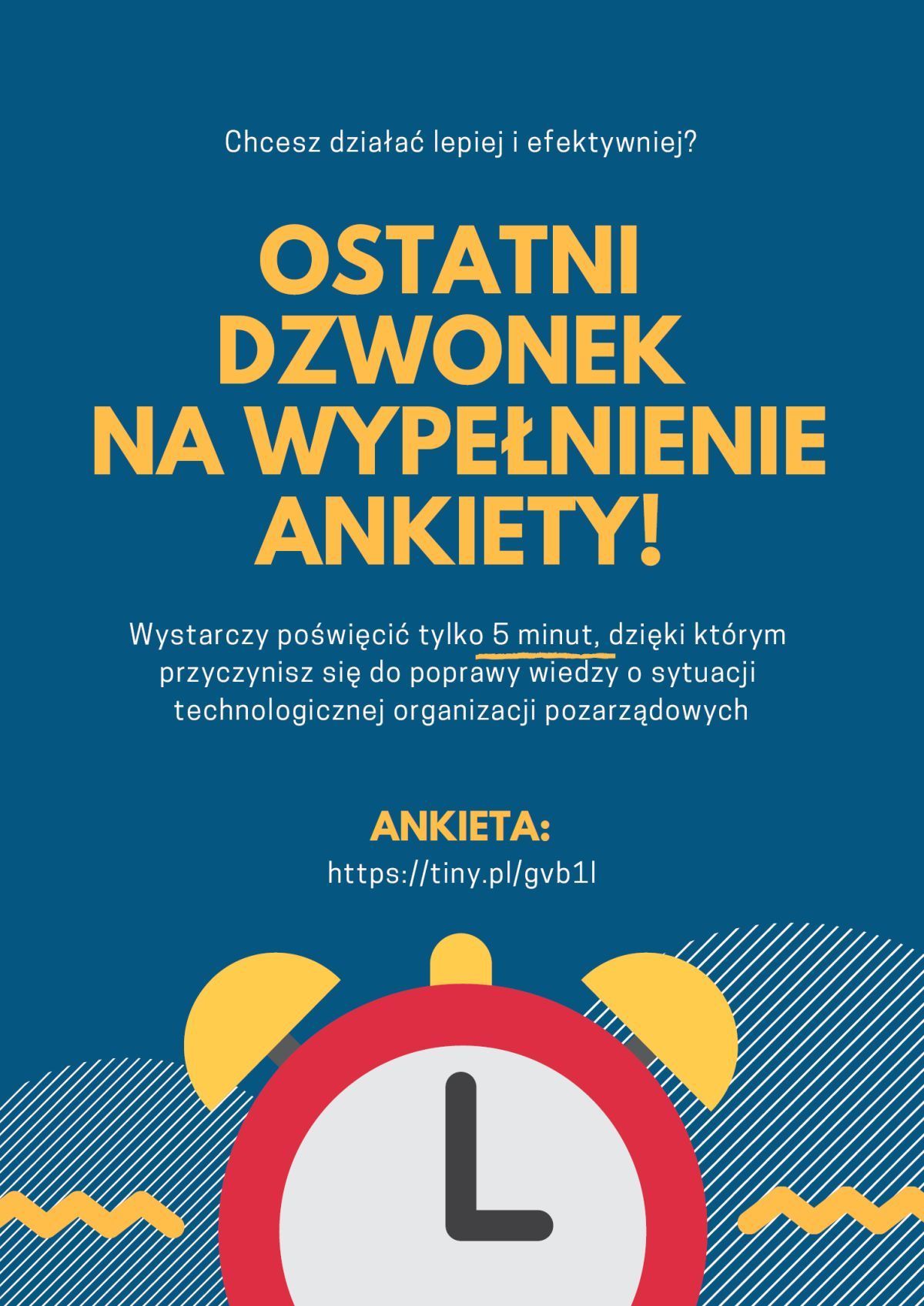 Razem z końcem września kończymy zbieranie opinii w naszej ankiecie. Poświęć 5 minut, dzięki którym możesz się przyczynić się do poprawy wiedzy o sytuacji technologicznej organizacji pozarządowych w naszym kraju.