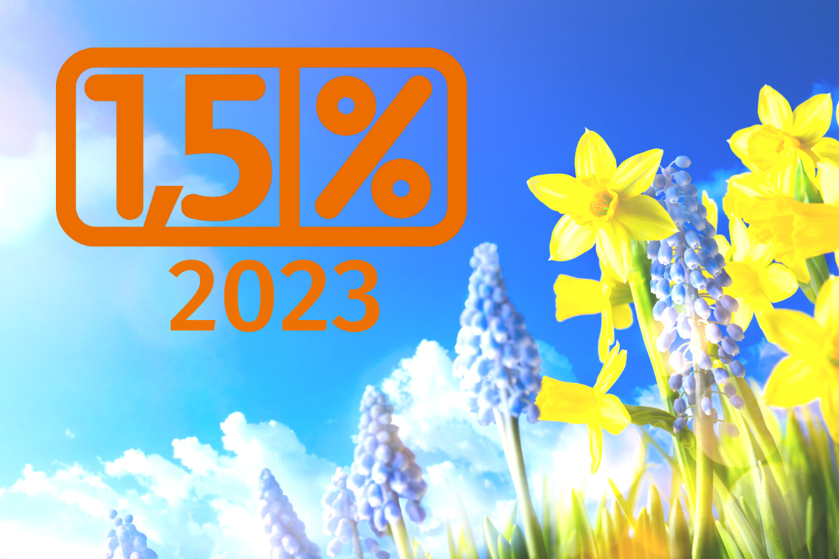 W 2023 r. podatnicy przekazują 1,5% zamiast 1%. Ta zmiana związana jest z podatkową rewolucją, która miała miejsce na początku 2022 r. Jednak mimo większej kwoty "procenta" organizacje obawiają się, że nie uda im się zebrać tyle, co w ubiegłych latach i sukces alokacji wyhamuje. Dlatego tym bardziej ważna jest wasza pamięć i aktywność! Wspierajcie OPP i nie zapominajcie o 1,5%. Więcej o zmianie 1% na 1,5% w artykule: 1,5% dla organizacji pożytku publicznego.