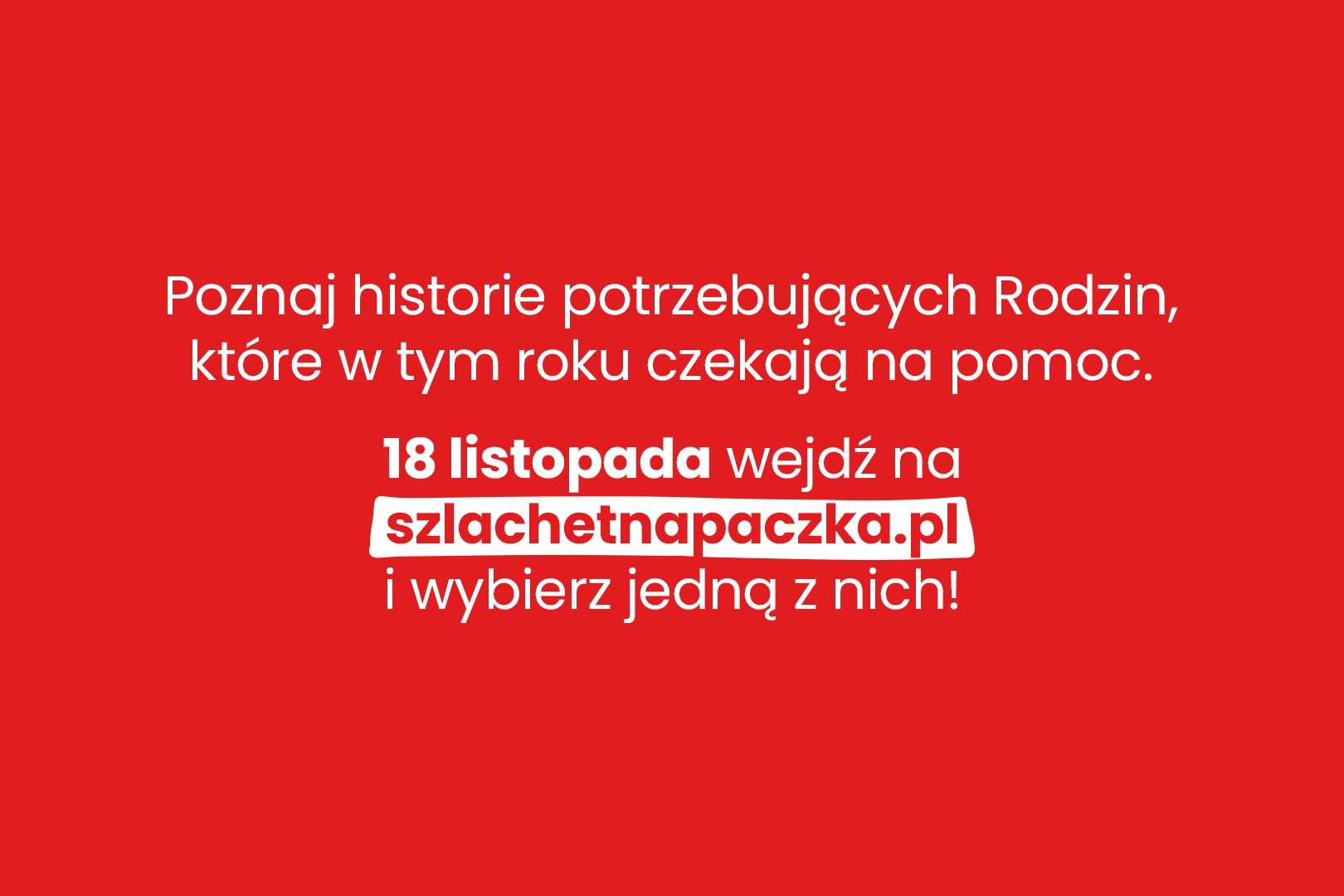 18 listopada wejdź na www.szlachetnapaczka.pl, poznaj historie potrzebujących rodzin i zrób „dzień dobry" jednej z nich!