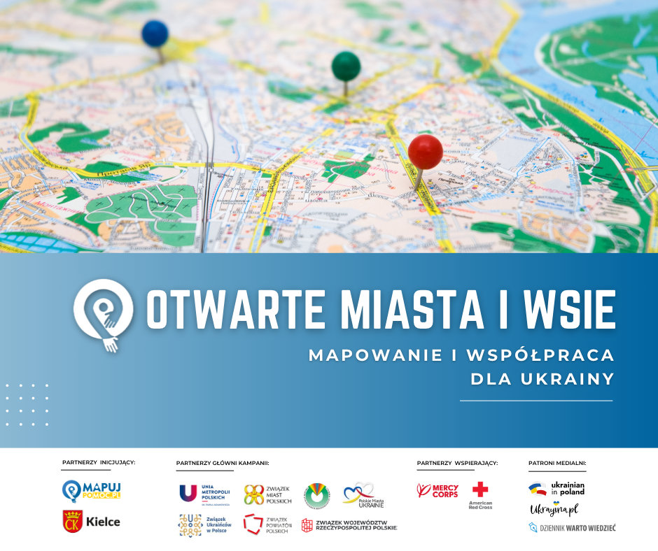 Otwarte Miasta i Wsie to projekt łączący działające w całym kraju organizacje, ośrodki pomocy i urzędy. Jego celem jest wsparcie merytoryczne osób mających bezpośredni kontakt z uchodźcami oraz wspólny rozwój narzędzia Mapuj Pomoc, organizującego ogólnopolską bazę punktów pomocowych. Cykl spotkań rusza 18 kwietnia 2023 w Kielcach. Kolejne odbędą się m.in. w Warszawie, Rzeszowie, Krakowie, Lublinie czy Gdańsku.
