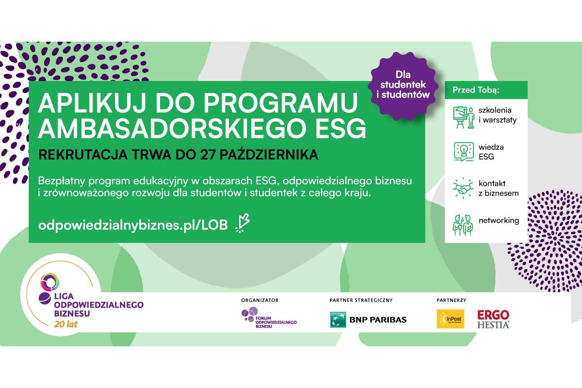 Liga Odpowiedzialnego Biznesu to pierwszy w Polsce bezpłatny program edukacyjny z zakresu odpowiedzialności biznesu i zrównoważonego rozwoju przeznaczony dla studentek i studentów. Udział w programie mogą wziąć osoby studiujące dowolny kierunek. Organizatorem jest Forum Odpowiedzialnego Biznesu, a partnerem strategicznym Bank BNP Paribas. Gospodarzem styczniowego zjazdu będzie InPost, natomiast w marcu ambasadorzy i ambasadorki spotkają się w siedzibie Grupy ERGO Hestia w Sopocie.