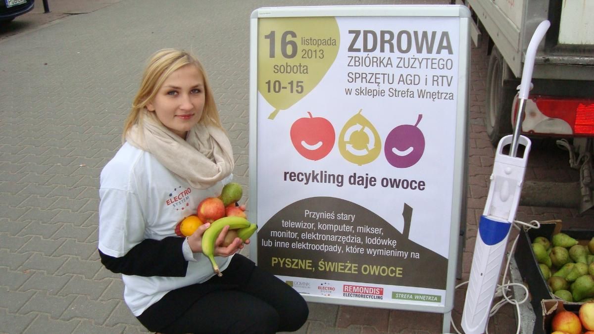 Akcja przy ul. Ostrobramskiej była ostatnią w tym roku niestety. Wcześniej była prowadzona w różnych miastach w całej Polsce m.in. w Katowicach, Gdańsku, w Siedlcach, Radomiu, Piotrkowie Trybunalskim, Włocławku, Płocku czy Krakowie. Tegoroczny cykl owocowej ekoedukacji zakończył się w Stolicy. Kolejne akcje w Nowym Roku, na nie już zaprasza Dominik Dobrowolski! Szczegóły: cycling-recycling.eu .
