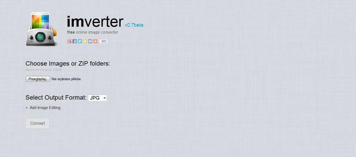 Następnym serwisem, który może przyspieszyć pracę na wielu plikach, które są gotowe do publikacji, ale chcemy umieścić je na stronie w innym formacie, niż wyjściowy jest serwis Imverter.com. To darmowy konwerter plików. Strona nie błyszczy, ale służy funkcjonalnością. Niezwykle surowy wygląd witryny tylko sprzyja zadaniowej pracy. Wystarczy, że w prosty sposób umieścimy w nim folder, w którym znajdują się fotografie lub plik archiwum, np. .zip o maksymalnym rozmiarze 20MB. Tu także możemy szybko zmienić rozmiar fotografii, automatycznie je obrócić, a nawet dodać prosty znak wodny (np. zdefiniowany przez nas napis, który pojawi się na każdym obrazie) czy zmienić kolorowe zdjęcie na czerń i biel. Po zdefiniowaniu przez nas czynności, jakie chcemy zrobić na plikach pozostaje rozpocząć proces, a serwis Imverter zwróci nam gotowy do pobrania plik. To niezwykle prosty i szybki sposób na zmniejszenie wielu fotografii.