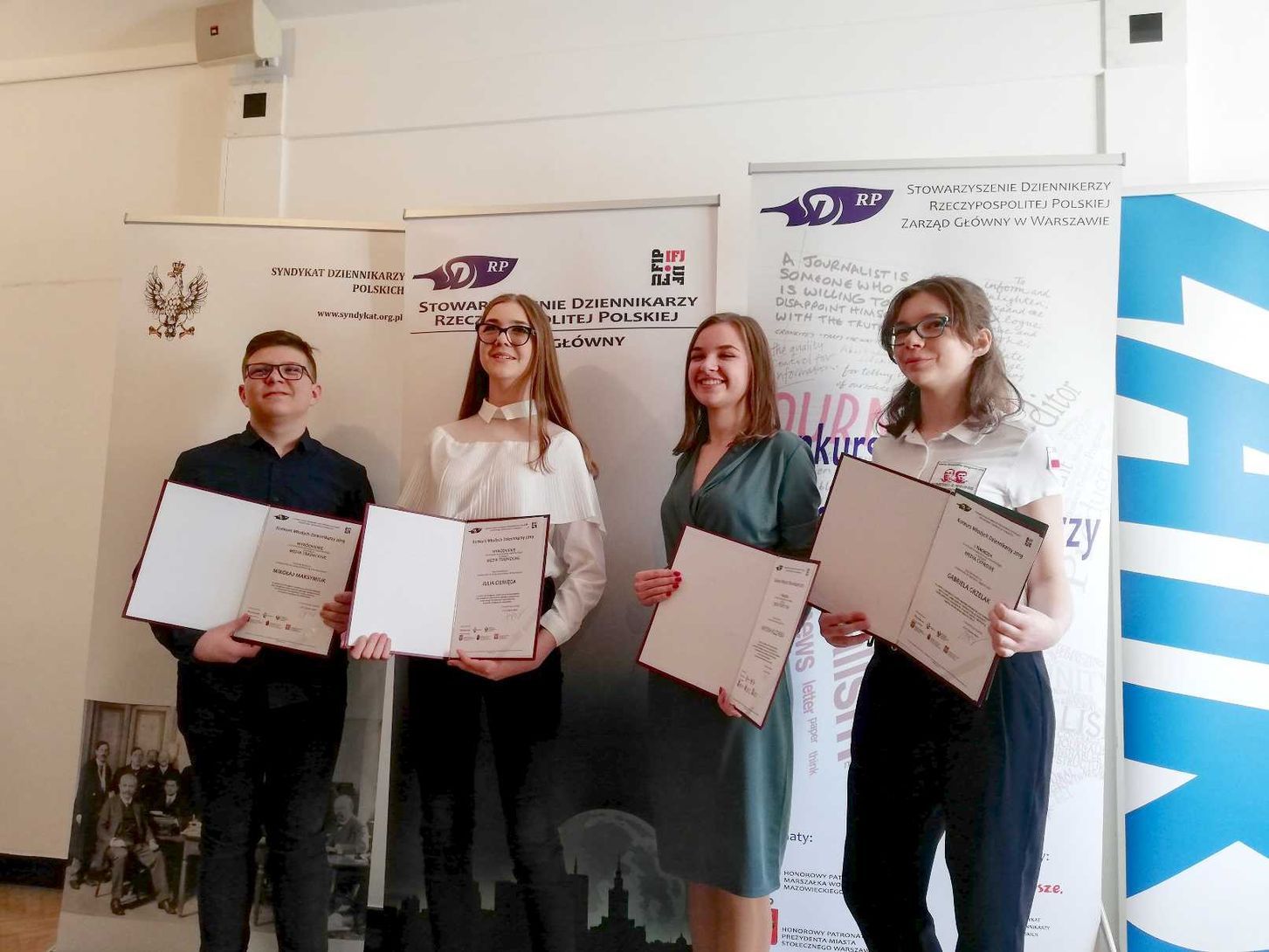 1. W kategorii media klasyczne – Wiktoria Wilczyńska z XLV Liceum Ogólnokształcącego w Warszawie im. Romualda Traugutta za redagowanie tekstów w gazecie szkolnej pod nazwą "Monitor Traugutta".