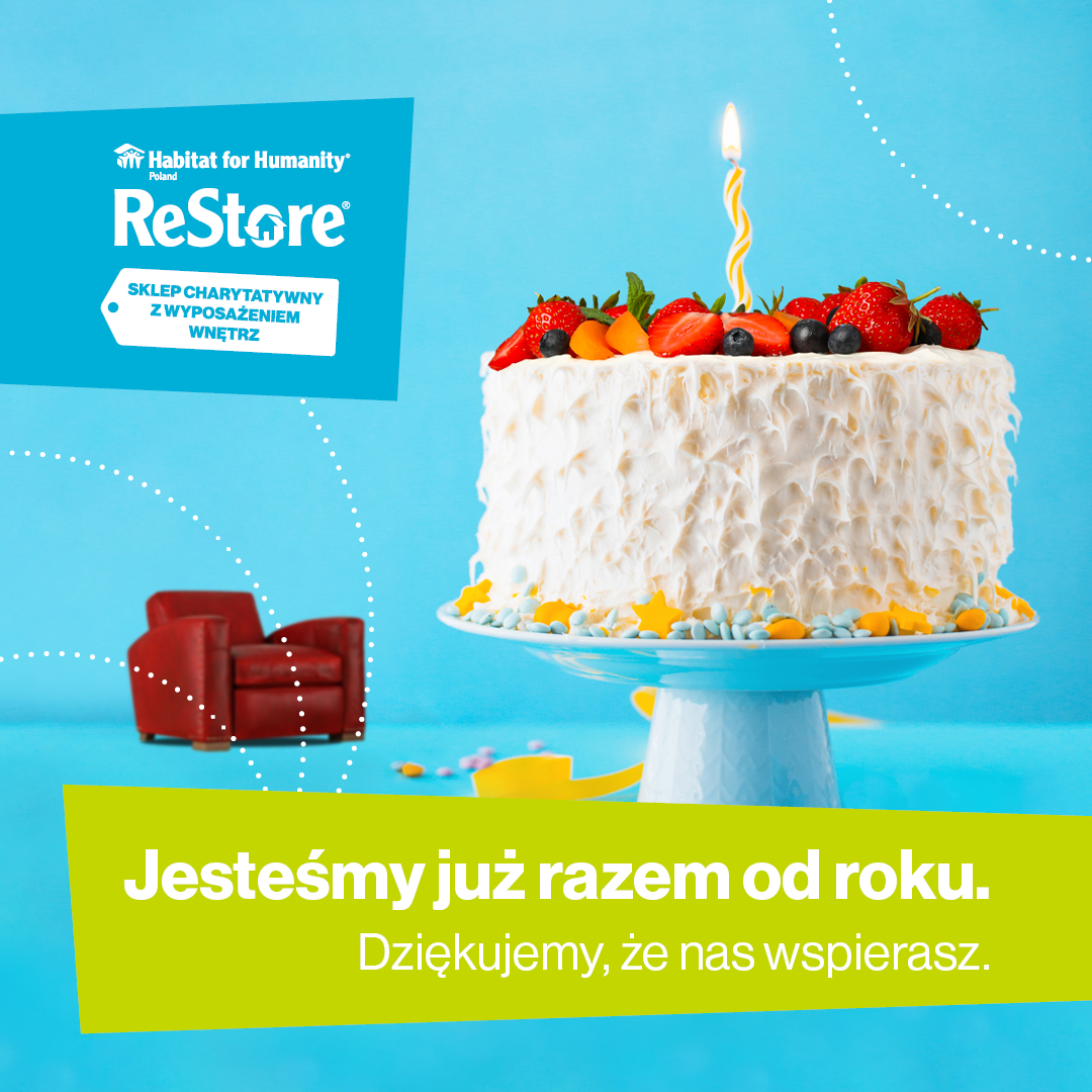Właśnie mija okrągły rok od otwarcia przez Habitat for Humanity Poland pierwszego w Polsce centrum ReStore. To miejsce magiczne, bo za pomocą siły serc zamienia podarowane sprzęty w tak bardzo potrzebną pomoc mieszkaniową. Przez pierwszy rok ReStore zawrócił z drogi na wysypisko 360 ton mebli i wyposażenia, włączył do edukacji ekologicznej ponad 1000 dzieci, aktywizował społeczność lokalną, zbudował zgrany zespół oparty na różnorodności.