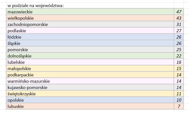 Poniżej można zobaczyć, jaką liczbę wniosków złożono w poszczególnych województwach.