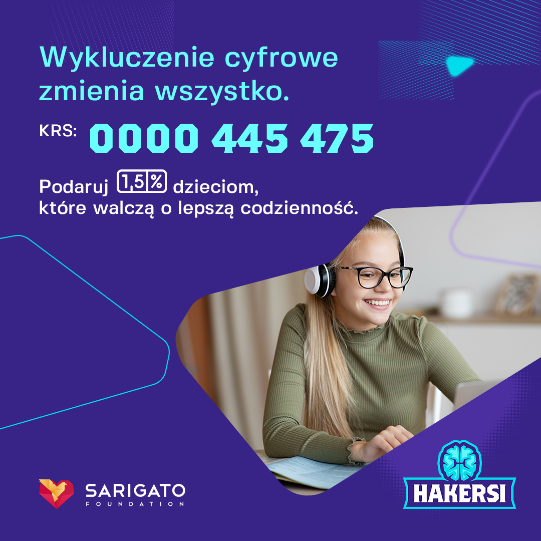 Pierwszy komputer, kurs z technologii czy staż w firmie to często pierwszy krok w stronę lepszej codzienności. Nie każde dziecko ma jednak możliwość spełniać swoje marzenia i rozwijać przydatne kompetencje. Trwa kampania, która uwrażliwia na zjawisko wykluczenia cyfrowego. Fundacja Sarigato, w ramach projektu Hakersi, wspiera edukację technologiczną dzieci i młodzieży z potrzebujących środowisk.