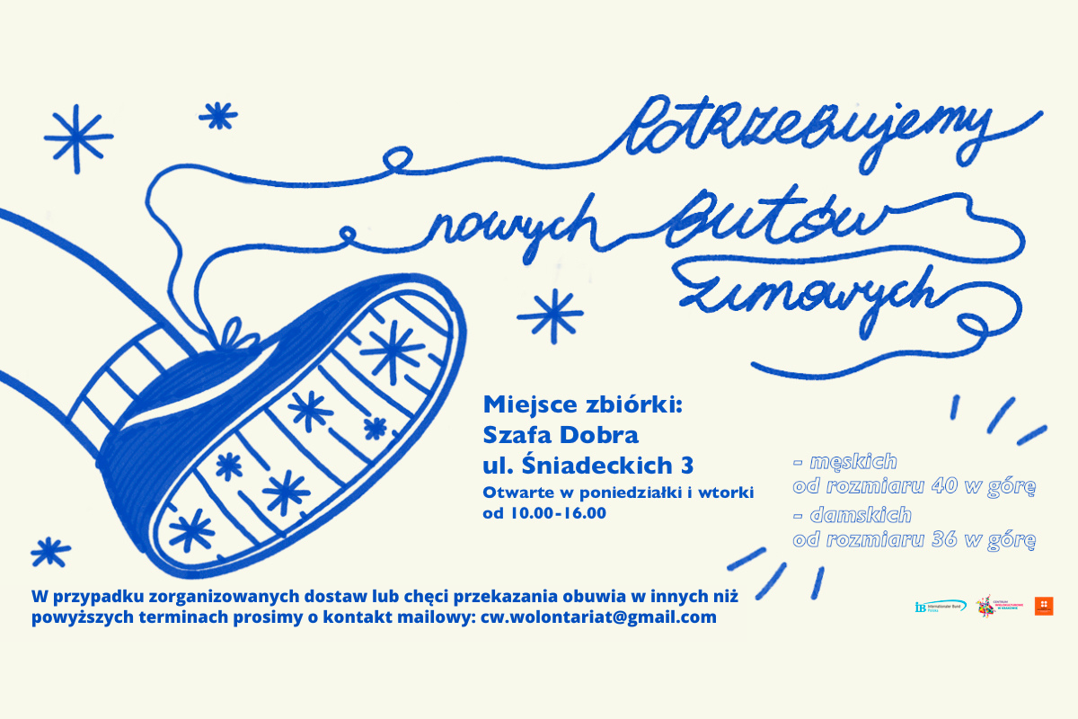 Zima to trudny czas, ale możemy wspólnie sprawić, że dla kogoś będzie o wiele łatwiejsza. Mało z nas myśli, że współcześnie możemy spotkać się z takim problemem jak brak ciepłych butów. Fundacja IB Polska, operator Centrum Wielokulturowego w Krakowie potrzebuje Waszego wsparcia!
