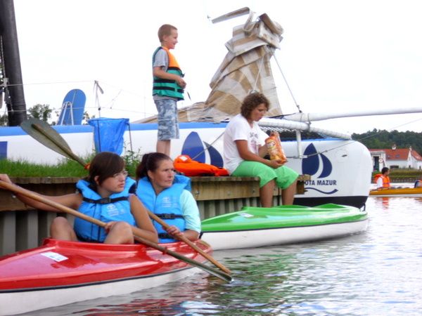 Uczestnicy projektu - 20 osób dzieci i młodzieży wraz z rodzicami i opiekunami wypłynęli z jeziora Roś. To była doskonała okazja od odwiedzenia również Wrot Mazur na kanale Jeglińskim. Nie obyło się bez niespodzianek. Uczestnicy w ramach projektu przeżyli również "chrzest bojowy" - niespodziewana burza i deszcz zmoczyła uczestników do przysłowiowej "suchej nitki". Ale ognisko, a przy nim gorące pieczone kiełbaski poprawiły nastrój przemoczonym i zziębniętym uczestnikom.