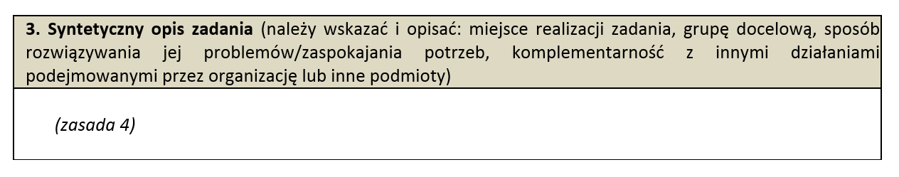 Nie ma obowiązku wskazywania w ofercie celów zadania publicznego, jednak zachęcam do stawiania sobie celów i określania ich (komplementarnie z ogłoszeniem o konkursie) – będzie Ci wygodniej opisywać rezultaty projektu (można to zrobić w punkcie III.3 – Syntetyczny opis zadania).