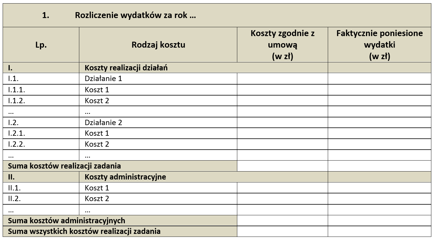 Natomiast Faktycznie poniesione wydatki (druga niewypełniona kolumna), to zbiorcze zestawienie wydanych pieniędzy. I tutaj autor rozporządzenia postanowił maksymalnie uprościć, jednak uproszczenie ma kilka smutnych niekonsekwencji.