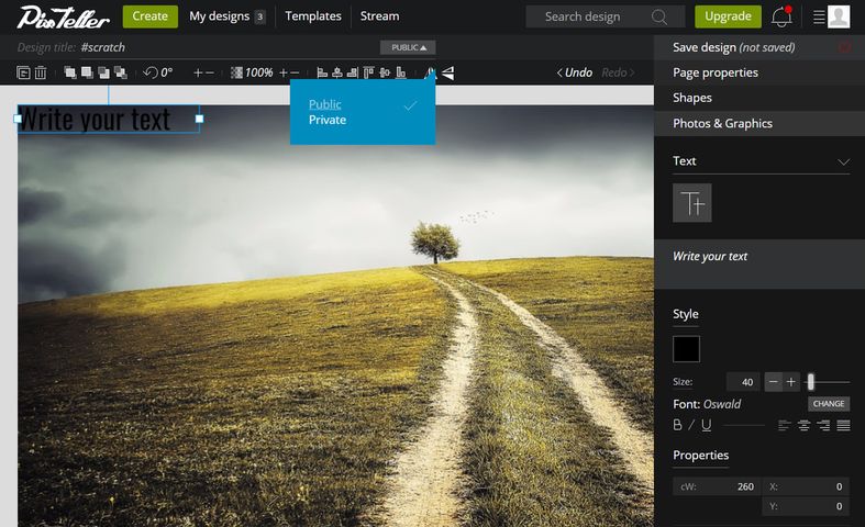 Jeśli prowadzisz fanpage w serwisie społecznościowym, chcesz zilustrować post grafiką z wiralnym potencjałem, lecz nie stać Cię na drogie programy, a na projektowaniu znasz się tak sobie, to narzędzie może być dla Ciebie. Zaproponuje darmowe zdjęcia z Pixabay, nałoży filtry, doda tekst, dobierze format do medium (Facebooka, Twittera, LinkedIna, Pinteresta, Instagrama) i voilà: Twój obrazek jest gotowy w… mgnieniu oka. Tak przynajmniej obiecuje hasło przewodnie tej rumuńskiej aplikacji: „Design in seconds”.