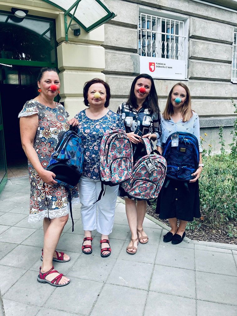 Na dobry początek nowego roku szkolnego Fundacja „Dr Clown” przekazała kolorowe plecaki dla podopiecznych Fundacji Dorastaj z Nami.