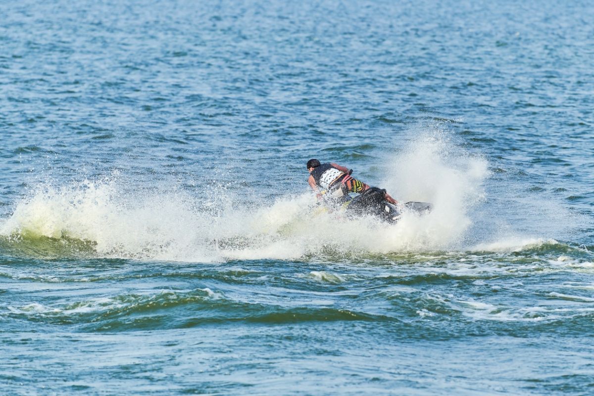 Zachowanie kierującego skuterem stanowi naruszenie przepisów ustawy o ochronie przyrody. Według art. 52 ustawy, obowiązuje zakaz umyślnego płoszenia i niepokojenia zwierząt ściśle chronionych, czyli wszystkich trzech gatunków fok zamieszkujących Bałtyk. Ponadto, art. 15 tej samej ustawy wyraźnie zakazuje umyślnego płoszenia zwierząt kręgowych, zakłócania ciszy, a także używania sprzętu motorowego oraz uprawiania sportów wodnych w rezerwatach przyrody. Zgodnie z przepisami takie działania podlegają karze aresztu lub grzywny.