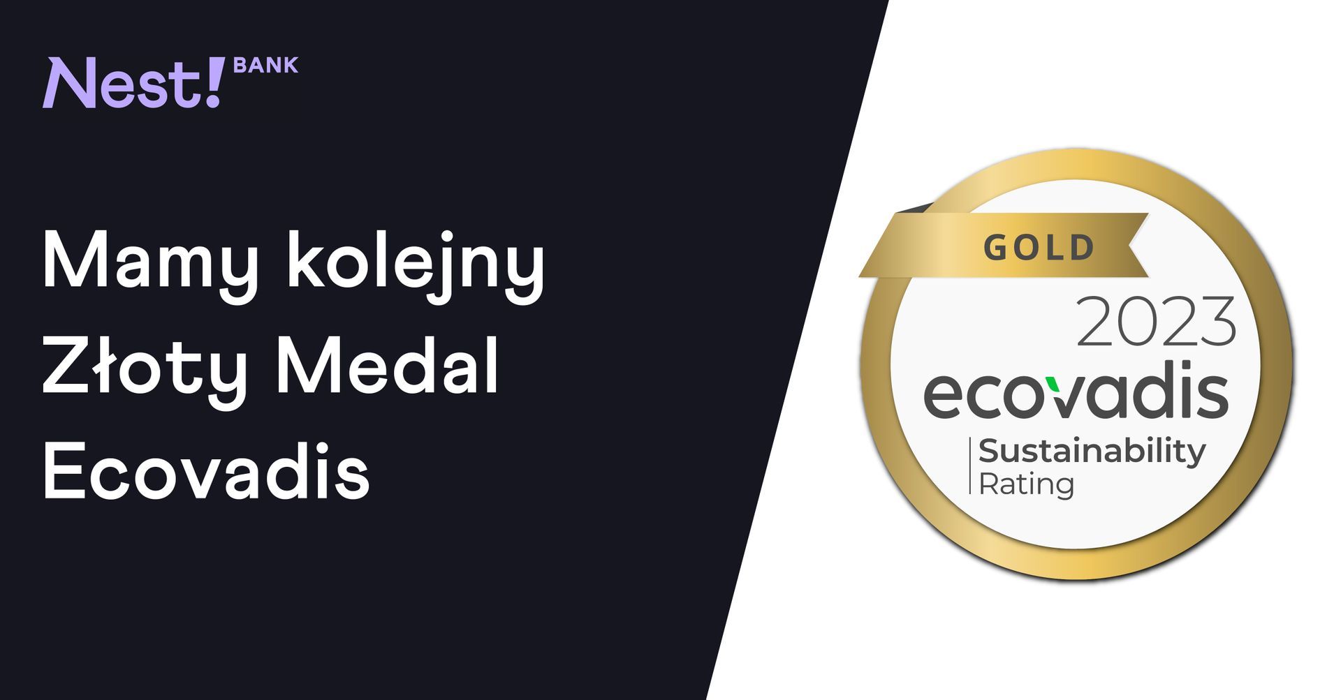 Złoty medal EcoVadis po raz kolejny powędrował do Nest Banku. To wyjątkowe wyróżnienie, przyznawane firmom mającym najwyższe standardy społecznej odpowiedzialności biznesu. Nest Bank od lat bierze udział w badaniu i dzięki wysokim ocenom we wszystkich kategoriach, tak, jak w roku ubiegłym, otrzymał złoty medal.