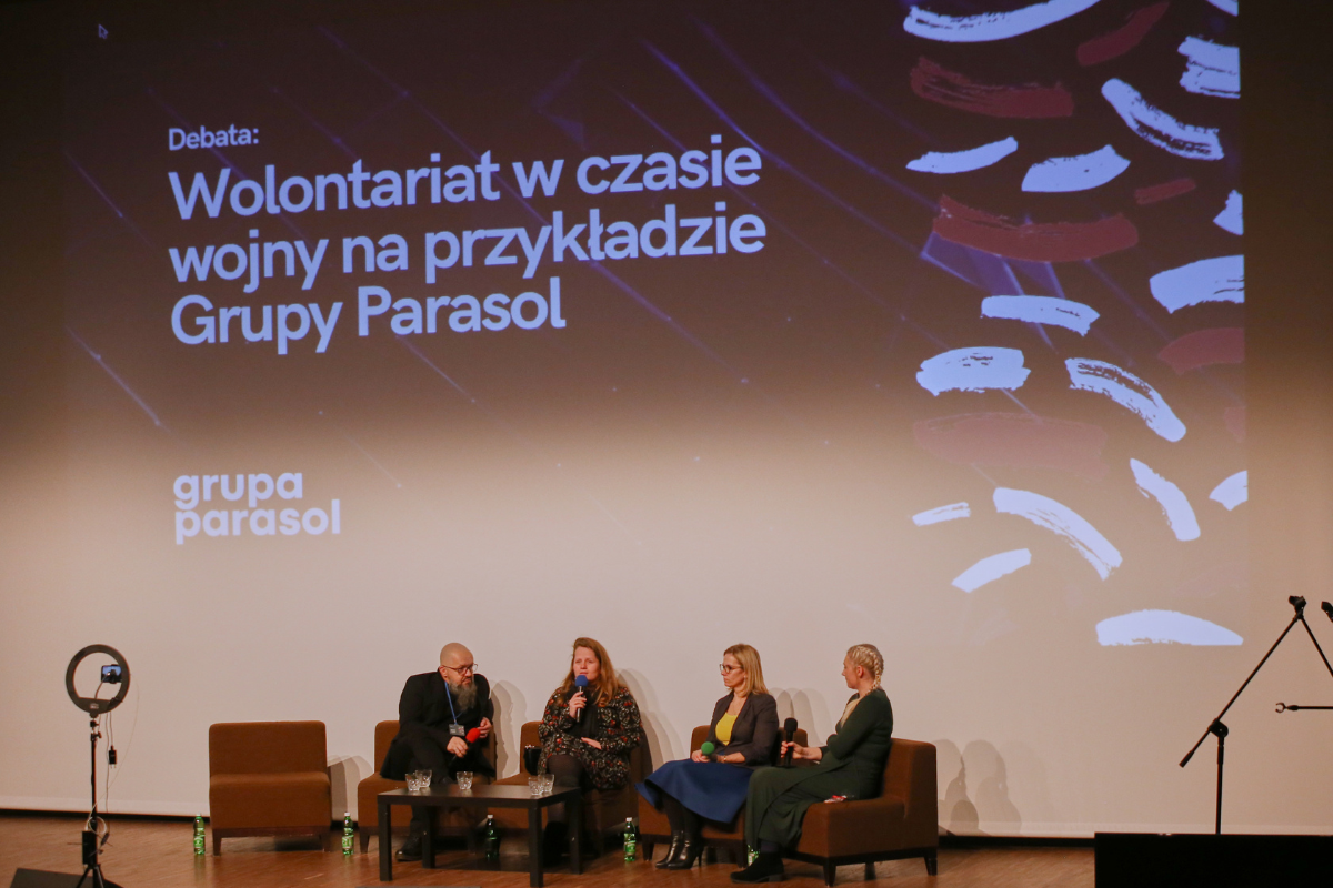 W trakcie gali odbyła się debata dotycząca wolontariatu w czasie wojny oraz powstałego w wyniku tych działań Parasola – Podkarpackiej Federacji Organizacji Pozarządowych. Nowa rzeczywistość, jaka powstała 24 lutego br. spowodowała, że najbardziej aktywne NGO z Podkarpacia postanowiły połączyć siły i rozpostrzeć parasol ochronny nad uchodźcami oraz wszystkimi osobami, które potrzebują pomocy i wsparcia na Ukrainie. Podczas debaty można było usłyszeć o ogromie pracy, włożonej w pomoc uchodźcom, o codziennych trudnościach i wyzwaniach, o załamaniach i próbach ich niwelowania, ale też o małych wiktoriach, które ostatecznie dają każdej z NGO poczucie, że ta walka na froncie pomocy ma największy, bo humanitarny sens. A że w grupie siła, to wygranymi w tej pomocowej bitwie są wszyscy, do których dotarła pomoc rzeczowa czy psychologiczna, jaką oferują zrzeszone w Parasolu organizacje pozarządowe.