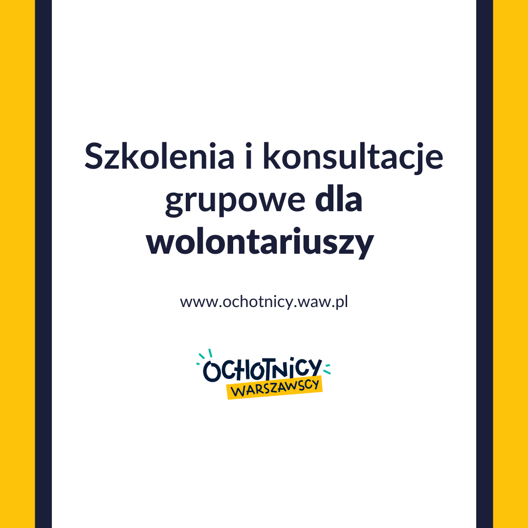 Po wakacyjnej przerwie wraca Miejska oferta szkoleniowo-edukacyjna dla wolontariuszy! Zapraszamy ochotników i ochotniczki z Warszawy do udziału w bezpłatnych szkoleniach i konsultacjach grupowych, które realizujemy nieprzerwanie od 2017 roku w ramach projektu „Ochotnicy warszawscy”.