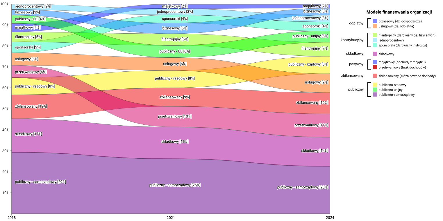 - Wzrost: Zyskują modele „usługowy” (przejście z dotacji na kontrakty) oraz „przetrwalnikowy”.