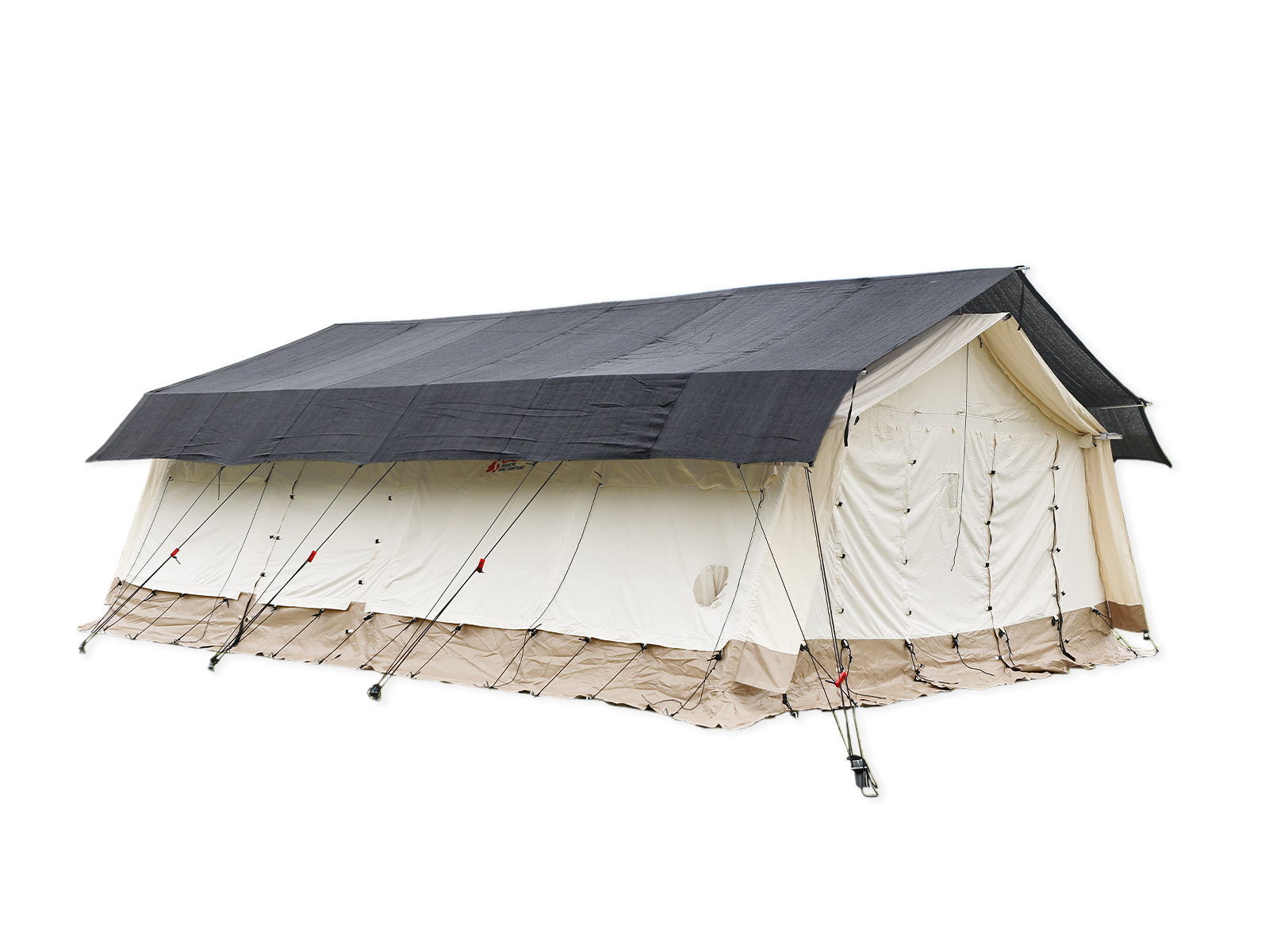 Czasem zwykły namiot to za mało. Ten uniwersalny model jest używany przez Lekarzy bez Granic jako schronienie dla pacjentów, magazyn materiałów medycznych, biuro, ośrodek żywienia, ambulatorium, a nawet szpital. Chroni przed wiatrem, kurzem, wilgocią i owadami, dzięki czemu sprawdzi się również w klimacie tropikalnym. Może pomieścić nawet do 40 osób