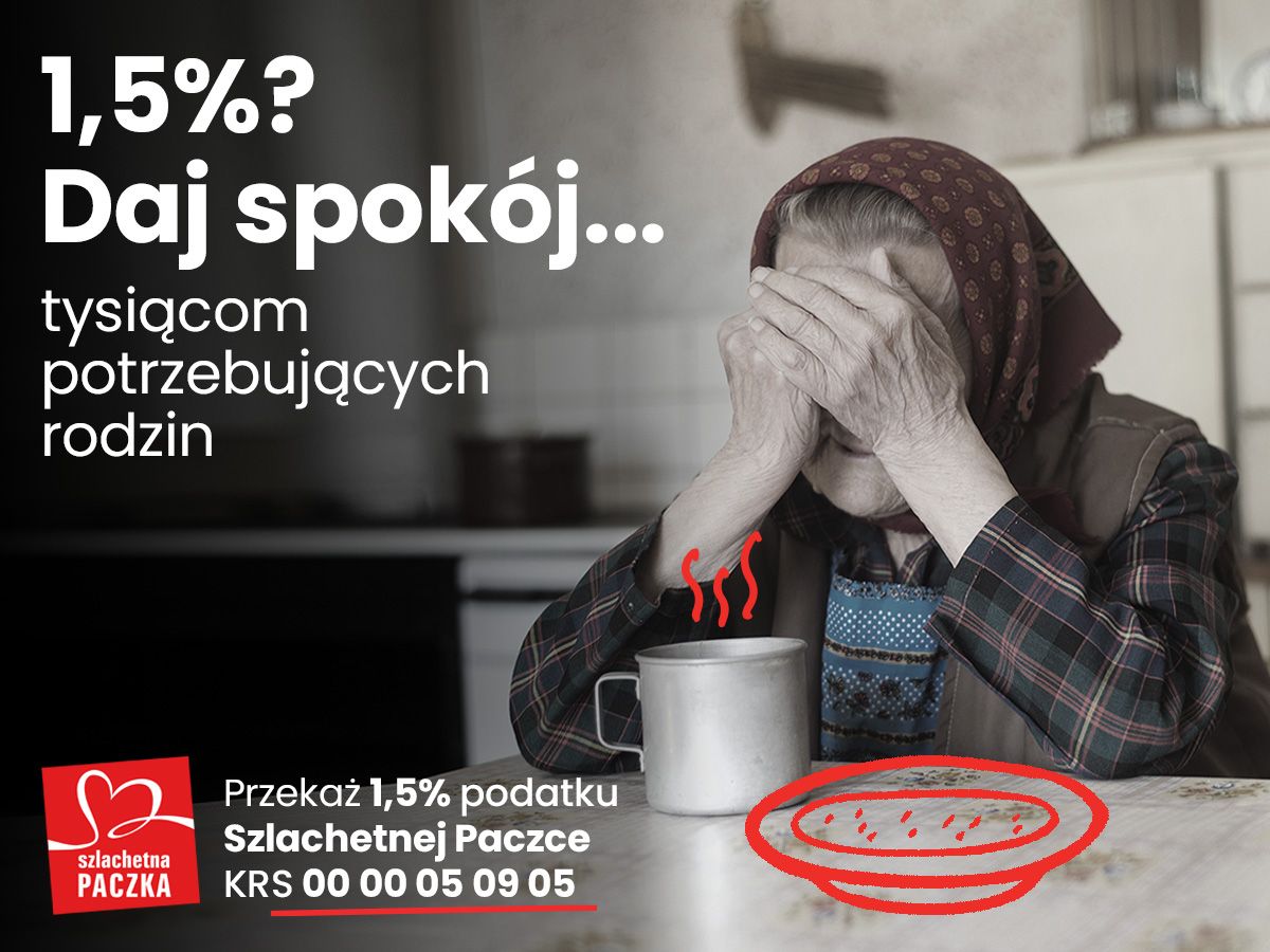 Jeżeli chcesz przekazać 1,5% podatku na organizację, która pomaga konkretnym osobom i równocześnie przyczynia się do wprowadzenia realnej zmiany społecznej na dużą skalę, wpisz w swoim zeznaniu podatkowym numer KRS Stowarzyszenia WIOSNA (które realizuje Szlachetną Paczkę i Akademię Przyszłości): 00 00 05 09 05.
