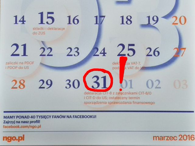 W marcowym kalendarzu NGO ważne są dwie daty. Pierwsza, 21 marca – warto wtedy przypomnieć sobie o pięknie otaczającego nas świata. Druga to 31 marca – ostatni dzień składania obowiązkowej deklaracji CIT. Wiosnę każdy przywitać potrafi. CIT może sprawić trochę kłopotu, dlatego doradczyni poradnik.ngo.pl podpowiada, co należy z tym zrobić.