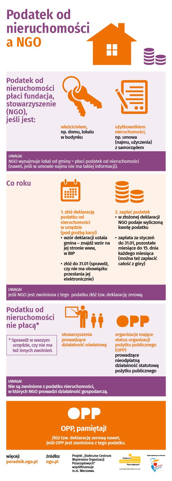Informacji o tym, kto płaci podatek od nieruchomości oraz w jakich sytuacjach organizacje pozarządowe mogą byc zwolnione od tego podatku szukaj w PORADNIK.NGO.PL: Podatek od nieruchomości w organizacjach pozarządowych